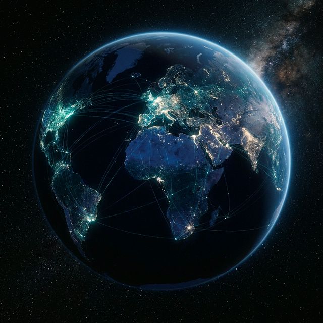 Humanity today. We rely on fossil fuels and fragmented grids while climbing toward planetary-scale coordination.